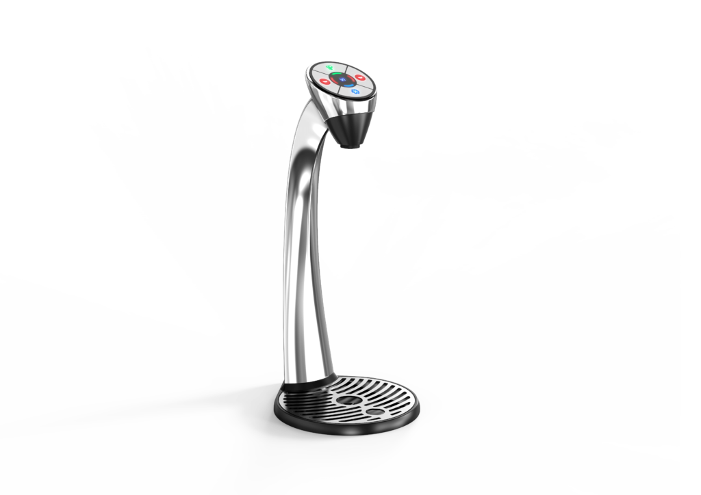 - 4 Wasserarten: Ungekühlt still, gekühlt still, leicht sprudelnd, sprudelnd